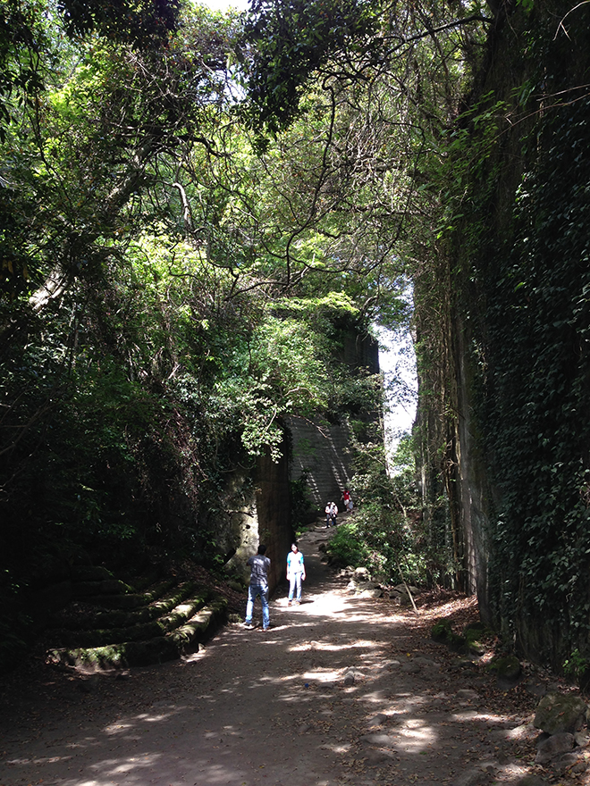 さて次は長い階段をのぼり、地獄のぞきと呼ばれる岩の先端を目指します。