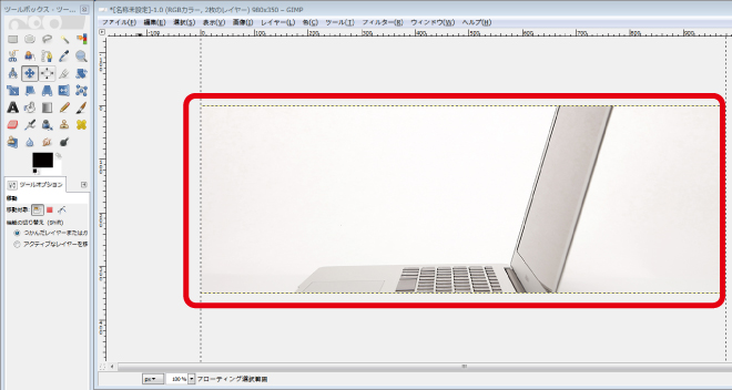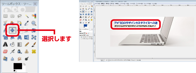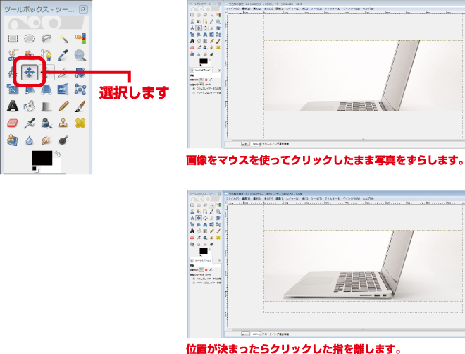 8.ツールボックスの「移動」を選択して画像をドラッグ&ドロップしてバランスの良い位置に調整します。