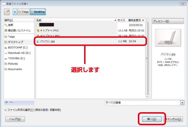 5.ヘッダ画像に使用したい写真を選択して開くをクリックします。