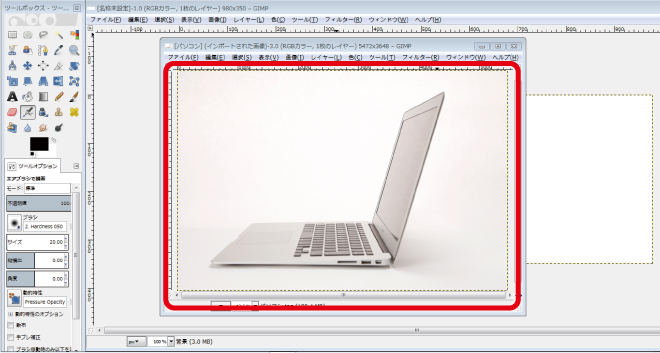 7.最初に「新しい画像作成」で作成した980px、高さを350のキャンパス画面でキーボードの「ctrl」と「V」を押して貼り付けます。