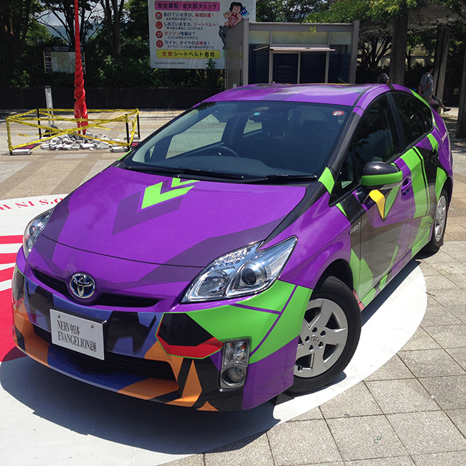 入口前の広場にはラッピングフィルムに印刷され貼込まれたエヴァンゲリオンのプリウスが1台。